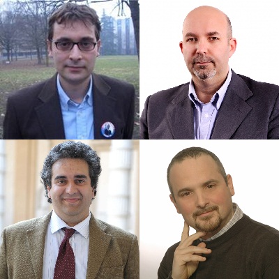 | Gli esponenti del M5S Matteo Olivieri, Vito Crimi, Vittorio Bertola e David Borrelli |